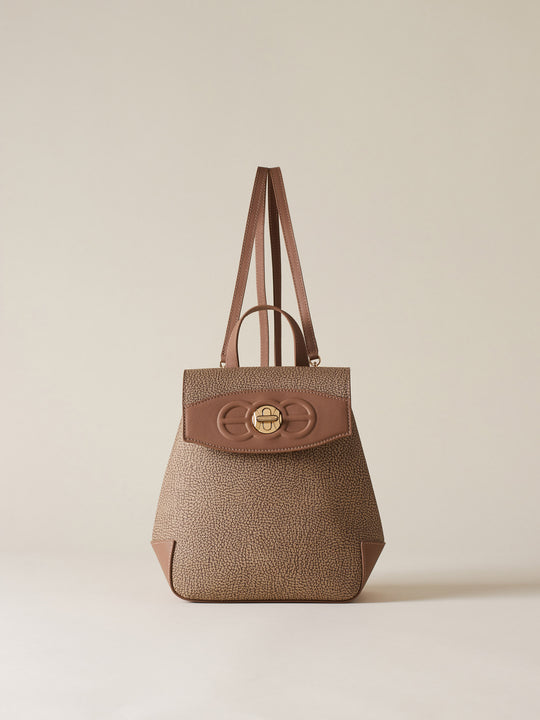 OP Coated Canvas and Leather Backpack - MOONLIGHT SMALL BACKPACK - Borbonese