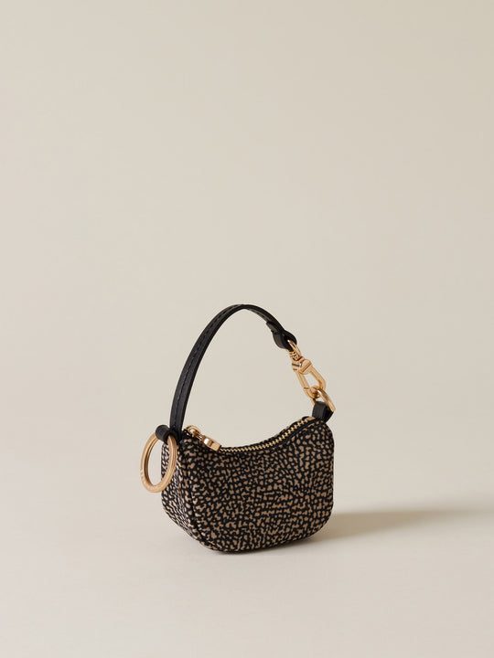 Op Recycled Fabric and Leather Keychain - LUNA KEYCHAIN - Borbonese