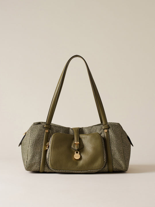 Op Recyled fabric and Leather Shoulder bag - POCHE BOWLER BAG MEDIUM - Borbonese