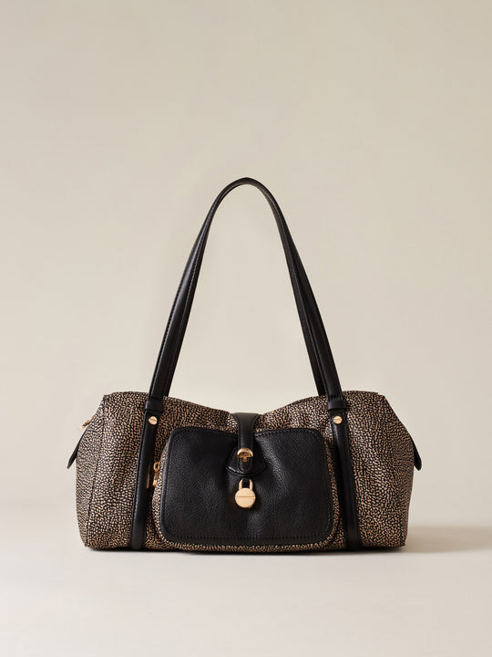 Op Recyled fabric and Leather Shoulder bag - POCHE BOWLER BAG MEDIUM - Borbonese