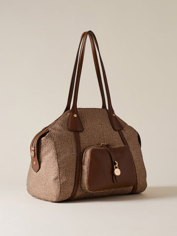 Op Recyled fabric and Leather Shoulder bag - POCHE SHOPPING BAG MEDIUM - Borbonese