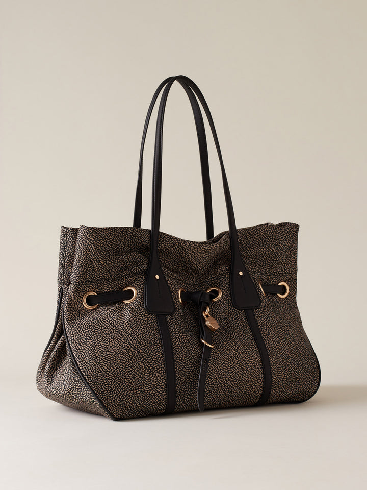 Borsa a spalla in Tessuto riciclato Op e Pelle - PRIVE BORSA SHOPPING LARGE  - Borbonese
