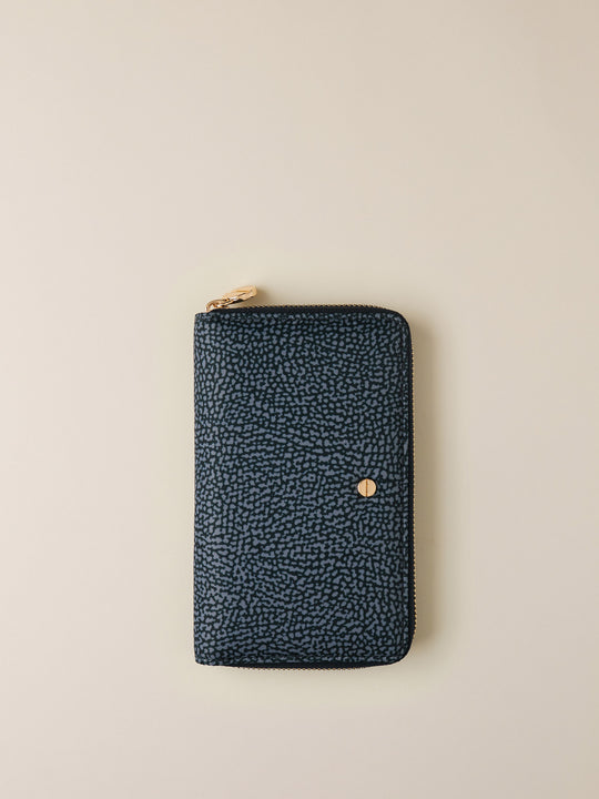 Portafoglio di tessuto riciclato Op e Pelle - PORTAFOGLIO CLASSICA MEDIUM ZIP AROUND - Borbonese