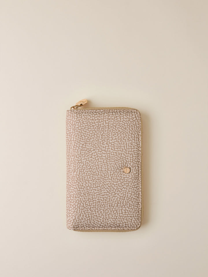 Portafoglio di tessuto riciclato Op e Pelle - PORTAFOGLIO CLASSICA MEDIUM ZIP AROUND - Borbonese