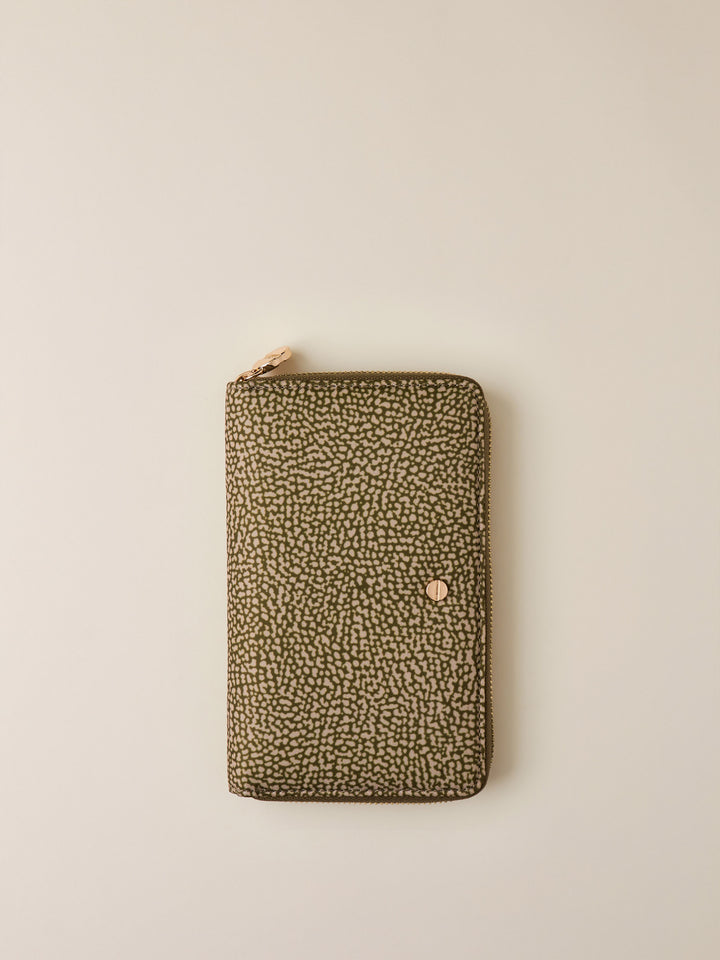 Portafoglio di tessuto riciclato Op e Pelle - PORTAFOGLIO CLASSICA MEDIUM ZIP AROUND - Borbonese