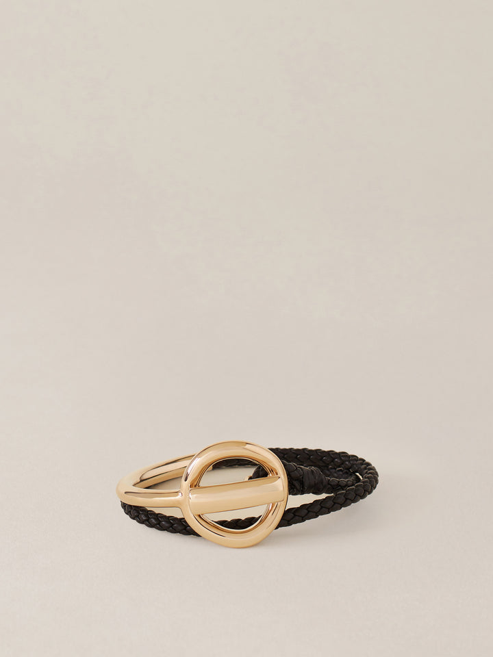 • Bracciale doppio giro intrecciato in vitello con elemento decorativo che riprende la vite, iconico simbolo del brand