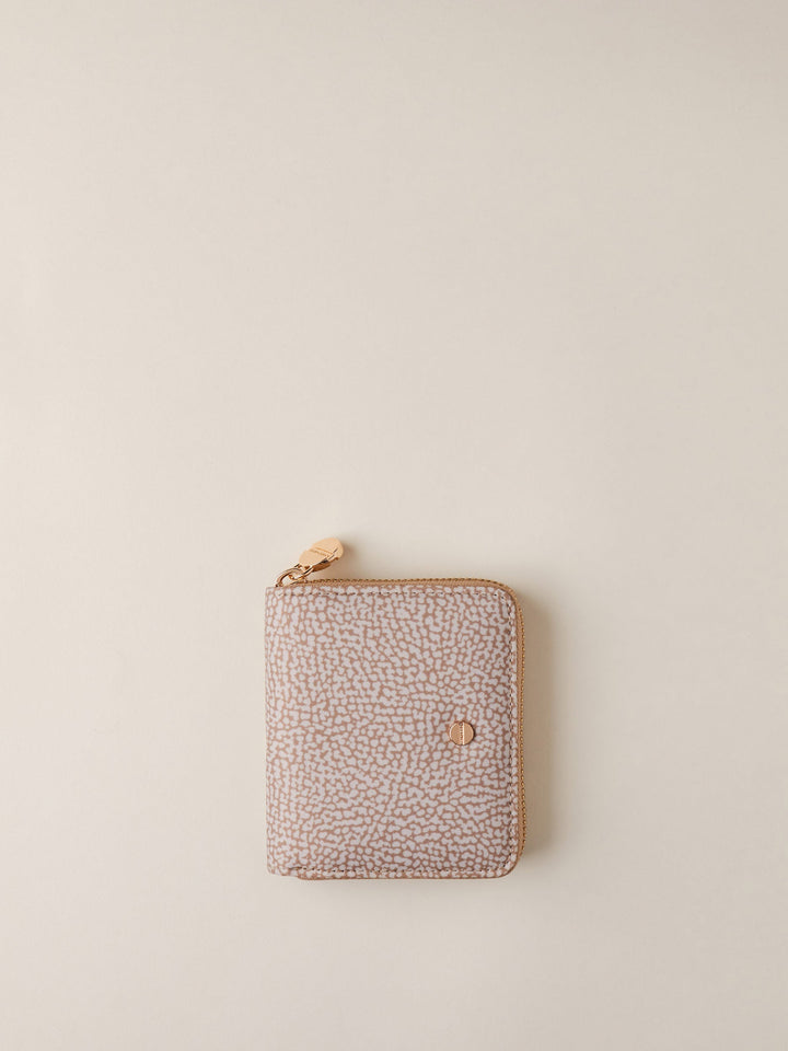 Zip Around di Tessuto Riciclato OP e Pelle - PORTAFOGLIO CLASSICA MEDIUM - Borbonese